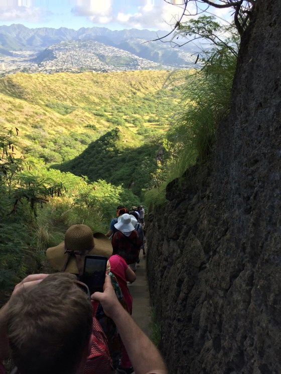We did a hike across the island that many people said was a good hike. It was a good hike, but it was also a strenuous and challenging hike. Steep, slippery slopes, across rocks and streams, through narrow passages where you had to climb over and under tree trunks, and down steep ridges with ropes. It took about 4 hours to do it, but we came out of the other side caked with mud, sweaty, but pretty satisfied with ourselves. The view from the top of the hike, by the Needle, was worth it.